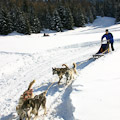 Dort konnten sie mit Hundeschlitten und ATVs fahren. Am Abend ging es mit einer Fackelwanderung zu einer rustikalen Hütte wo das Abendessen stattfand.